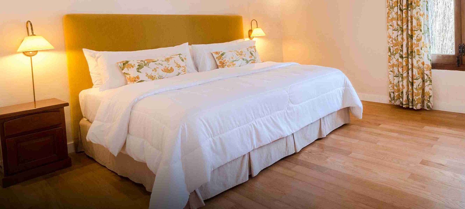 Exclusivas Suites que combinan el estilo de una tradicional casa patagónica en armonía con las comodidades y equipamiento de categoría cuatro estrellas.